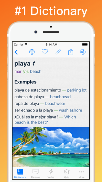 القاموس الإسباني هو القاموس الإسباني الإنجليزي رقم 1 لأجهزة الآيفون والآيباد وساعة آبل. تم تطويره من قبل Ascendo Inc.، وهو قاموس غير متصل بالإنترنت يتم تجميعه من قبل لغويين محترفين ويقدم مجموعة واسعة من الميزات لتعزيز تجربة تعلم اللغة الخاصة بك. مع قاعدة بيانات شاملة تحتوي على أكثر من 705،000 إدخال غير متصل بالإنترنت، يوفر العديد من الترجمات وأمثلة الاستخدام ومعلومات الجزء من الكلام والصور والجنس للأسماء الإسبانية.